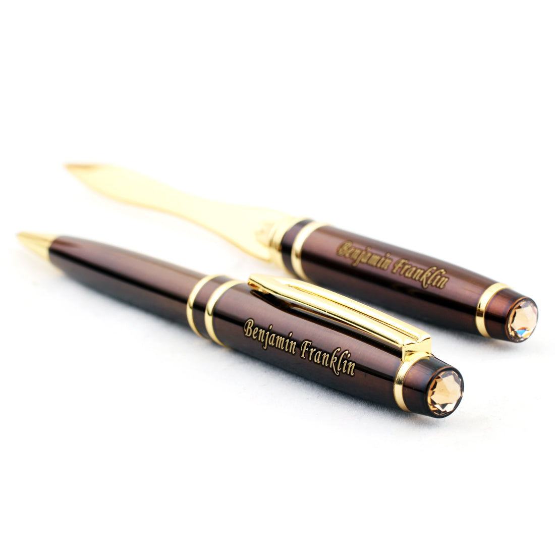 MLST007 SOTANIA LETTER OPENER PEN SET BROWN GOLD TRIM